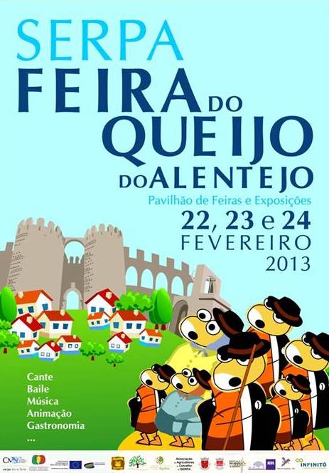 O queijo de Serpa, Denominação de Origem Protegida (D.O.P.) desde 1996, caracteriza-se pelo cheiro intenso e pela pasta semi-mole ligeiramente amanteigada. A sua produção artesanal tem sido um contributo para a economia rural daquele concelho alentejano. A Feira do Queijo do Alentejo, em Serpa, é um espaço que homenageia este produto e o divulga junto de todos quantos visitam o concelho nos dias do certame. Uma feira que também serve de apresentação de outros produtos distintivos da região: os enchidos, os azeites, os vinhos, os méis, o pão e as azeitonas. Uma mostra que se completa com as artes e artesanato de Serpa. O programa deste ano faz-se com demonstrações de tosquia, formações sobre produção de queijo e demonstrações de cozinha ao vivo com os temas "Gastronomia com Produtos Tradicionais" e "Cozinhar com os produtos da Feira". Todas elas actividades com diferentes momentos ao longo dos três dias de certame. |